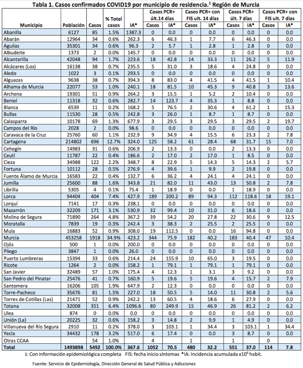 De los 86 nuevos casos registrados en la última jornada, 40 se localizan en Murcia, 24 en Lorca, 9 en Cartagena, tres en Mazarrón y dos en Totana. El resto son positivos de varios municipios.