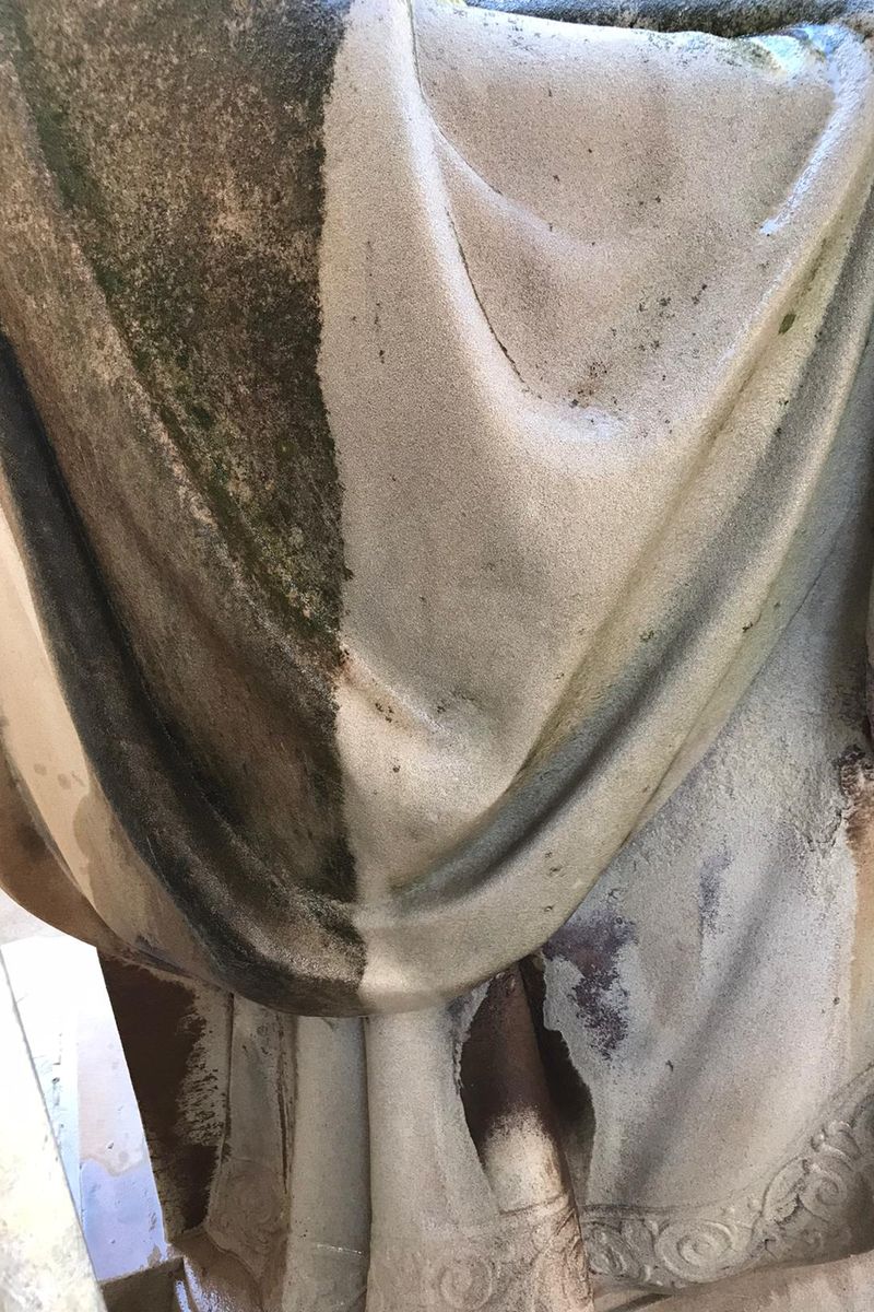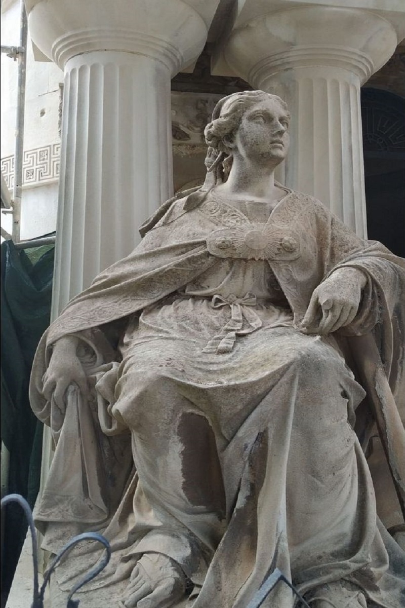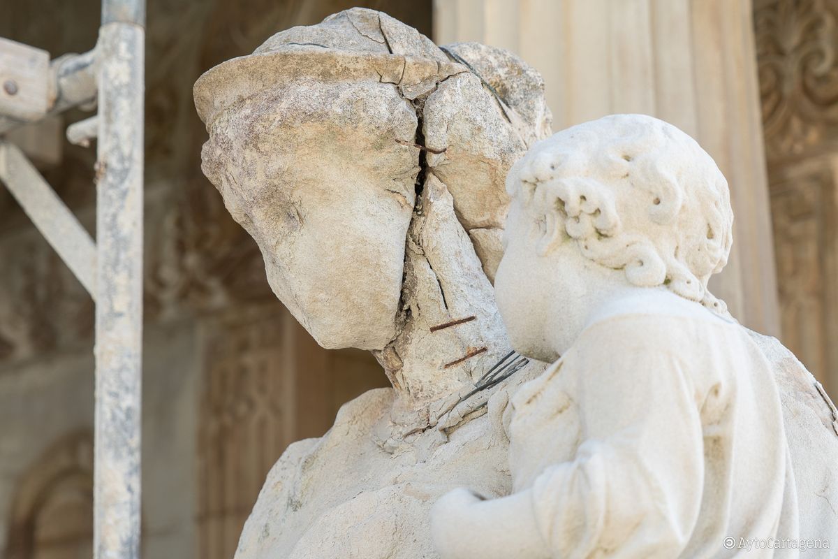 Las tres gracias del Panteón de Pedreño empiezan a recuperar su aspecto original