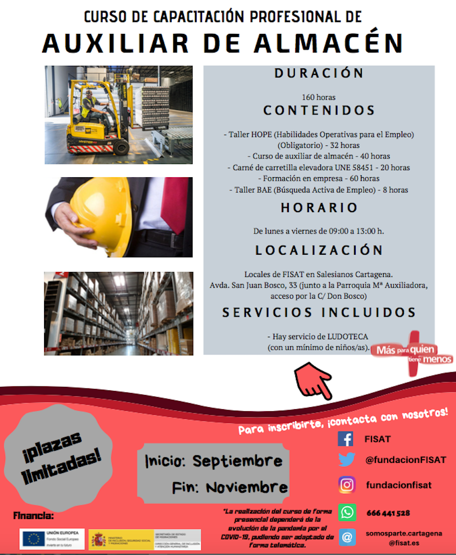 A través de este proyecto, ofrecemos tanto mejora de las competencias básicas para el empleo, como capacitación profesional, como orientación laboral. Gestionamos el programa de manera que, primero, los participantes pasan por un Taller HOPE (Habilidades Orientadas Para el Empleo) y, posteriormente los y las capacitamos profesionalmente en distintos cursos de capacitación con carnés profesionales. Cabe destacar que debido a la situación de incertidumbre que vivimos actualmente, los cursos-talleres se adaptarán a las circunstancias sanitarias pudiendo adaptarse a vía telemática.