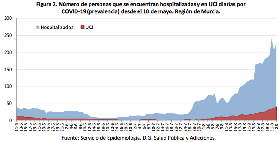 Destacar la cifra tan elevada en Cartagena, la mayor durante la pandemia, aunque no hay que olvidar que hace unos días se abrió el punto covid de Barrio Peral y han aumentado las pruebas diagnósticas.  La cifra total desde el inicio de la pandemia hasta el 3 de septiembre es de 633, de los que 186 corresponden a la última semana.
