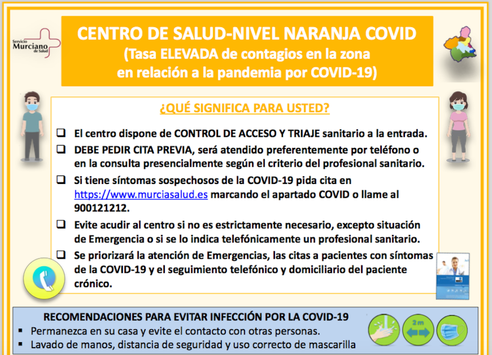 Se encuentran en la fase de tasa elevada de casos positivos Covid-19, nivel naranja, los centros de salud de