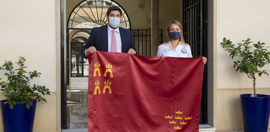 El presidente de la Comunidad, Fernando López Miras, recibió hoy en el Palacio de San Esteban a la cartagenera que participará en la sexta edición del ‘Reto Pelayo Vida Vuelta España 2020’, tras haber superado un cáncer de mama, a quien entregó una bandera de la Región de Murcia que le acompañará en la expedición que emprende el próximo 12 de octubre junto a otras cuatro mujeres que también han vencido al cáncer.