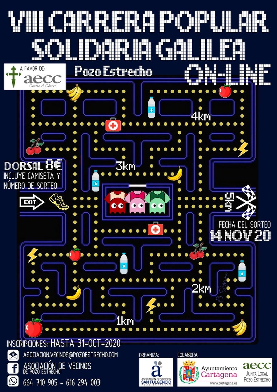 La prueba no podrá celebrar su octava edición de forma presencial debido a la situación actual generada por el coronavirus, decidiendo la Asociación de Vecinos San Fulgencio de Pozo Estrecho llevarla a cabo 'en línea' con la fórmula de adquirir un dorsal (incluye camiseta y número para el sorteo) y remitir un vídeo corriendo o andando, el cual será subido a redes sociales. Esta prueba tiene la vertiente solidaria de ayudar a la junta local de la Asociación Española con el Cáncer. Para apuntarse contactar previamente con miembros de la Asociación de Vecinos o de la Junta Local de la AECC en Pozo Estrecho y se concertará una cita para así evitar aglomeraciones.