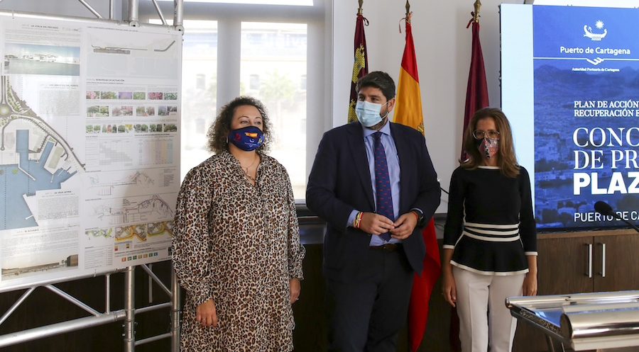 Esta mañana el presidente del ejecutivo regional, Fernando López Miras, ha presentado el proyecto ganador del concurso “Estudio de desarrollos de usos e integración paisajística en la fachada marítima de Cartagena” que pretende hacer Cartagena más abierta desde las instalaciones y espacios del Puerto, como escenario de convivencia de integración en el día a día del puerto y la ciudad, donde el frente portuario tome protagonismo en la vida de la ciudad, con nuevos usos urbanos, como escenario de grandes acontecimientos ciudadanos, en definitiva, un espacio atractivo para turistas y cartageneros. Recoge la simbiosis Puerto, ciudad de Cartagena, Región de Murcia.