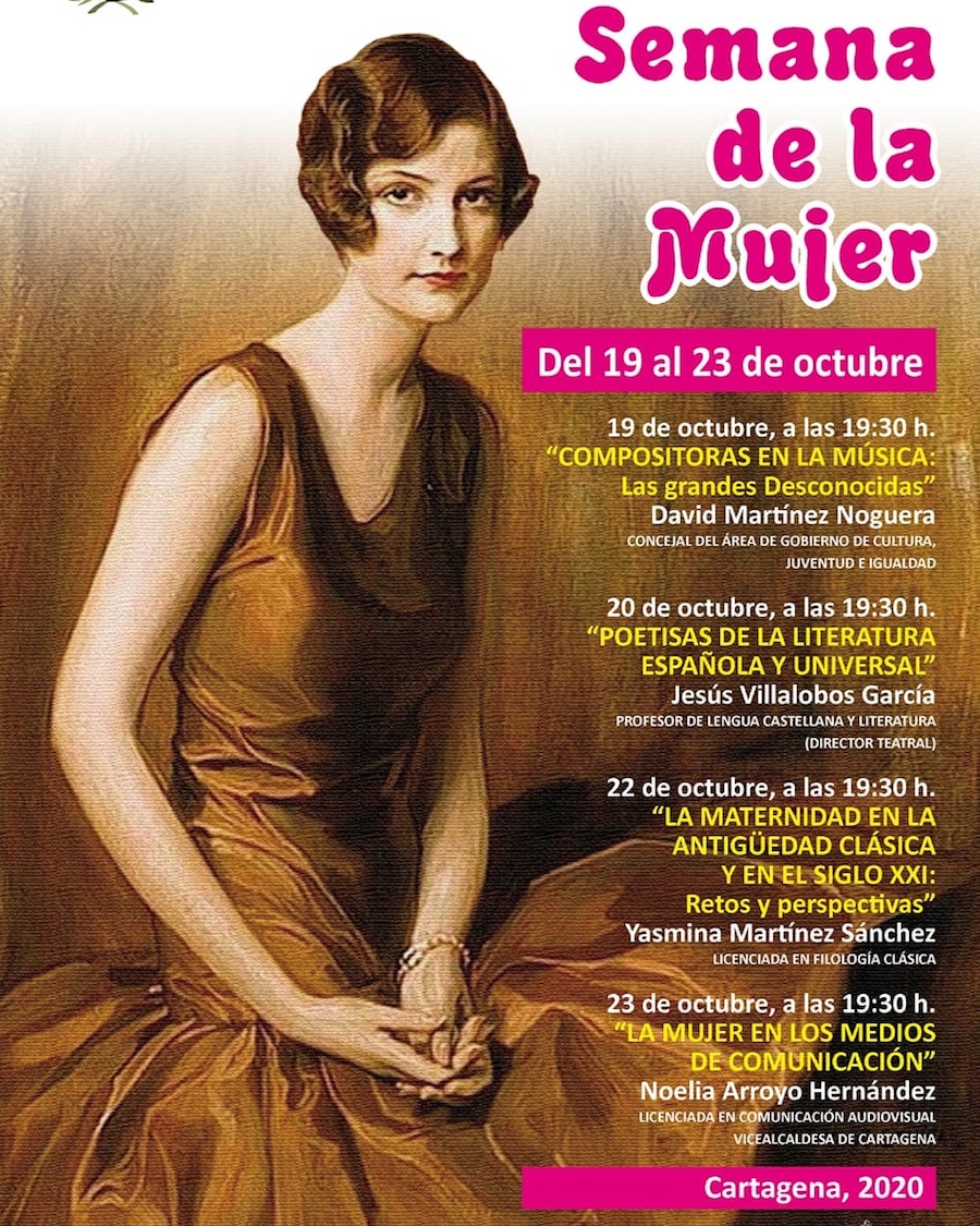Las jornadas que organiza la Real Sociedad Económica de Amigos del País de Cartagena se desarrollarán desde este lunes y hasta el viernes, con temática variada que va desde compositoras y poetisas hasta la mujer en los medios de comunicación, además de retos y perspectivas sobre la maternidad en la antigüedad y en el presente.