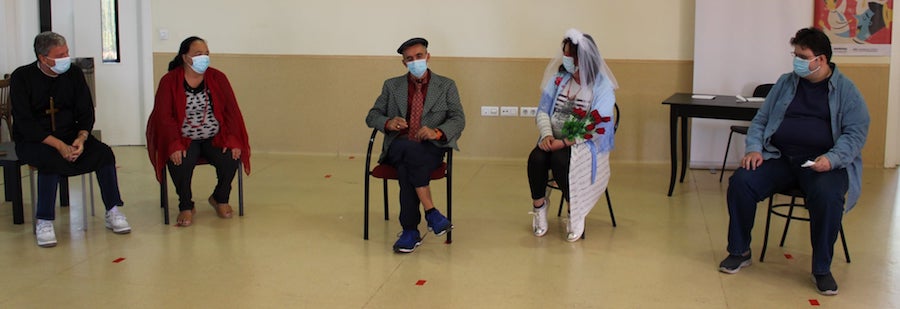 La asociación de salud mental de Cartagena, con sede en Santa Ana, acogió a la compañía de Blanca Marsillach, que ofreció una representación de teatro adaptado en el que actores y actrices de la compañía dieron vida a diversos personajes de pequeñas obras.Debido a la situación de este año generada por el coronavirus, la representación de 'Entremeses' se llevó a cabo en el centro de día de Ápices en lugar de un escenario público. Desde Ápices se agradece a la compañía teatral, a Varela Producciones y a Fundación Repsol por hacer posible esta experiencia, que contó con la presencia del concejal David Martínez y de la secretaria de la junta directiva de Ápices, Juana Martínez Martínez, estando encuadrada en la celebración del programa del 'Día mundial de la salud mental'.