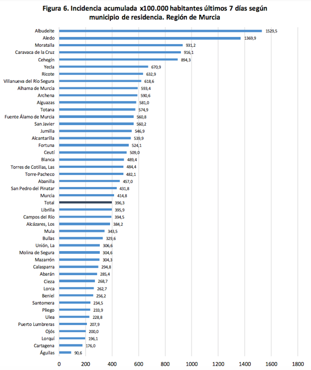 El último día ha dejado sólo 17 contagios en el municipio, que comienza la nueva semana con una incidencia acumulada de 176 afectados por cada 100.000 habitantes, cifra que sólo mejora Águilas y que está muy por debajo de la media regional (396,3).
