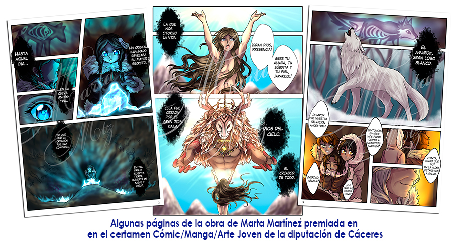 Marta Martínez Martínez parece tener en el certamen Cómic/Manga/Arte Joven de la diputación de Cáceres su concurso 'fetiche'. Pese a su corta edad y trayectoria en este mundillo, ya recopila varios premios importantes, siendo en tierras extremeñas donde los reconocimientos a sus trabajos son ya habituales. En el año 2017 logró un segundo premio, que superó con un primero en el ejercicio siguiente. Ahora, dos años más tarde, ha vuelto a presentarse y otra vez el jurado la elige como triunfadora en la categoría de 14 a 20 años de edad. "Cuando me enteré de que había sido premiada nuevamente no me lo creía, es estupendo", expresa Marta a este periódico, explicando que el jurado resuelve un 'concurso ciego', es decir, que los trabajos les llegan bajo el anonimato, con lo que desconocen quién los presenta, "con lo que tiene aún mayor valor", añade quien en la actualidad cursa el segundo curso del grado superior de Ilustración en la Escuela de Arte de Murcia, quien ve recompensado un esfuerzo de muchas horas para confeccionar las diez páginas de 'Kaila y el origen del mundo', donde "vuelvo a adentrarme en la mitología", ahora en el mundo esquimal.