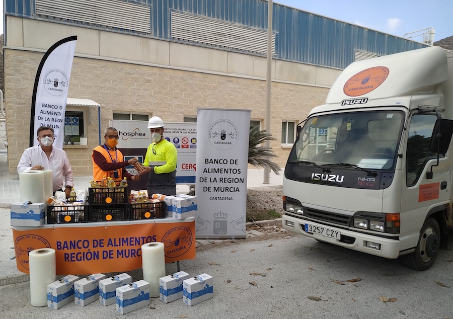 Banco de alimentos de la Región de Murcia con sede en Cartagena ha recibido una donación de la empresa Fosfatos de Cartagena (antigua Potasas) del Valle de Escombreras, consistente en alimentos y en films para envolver palets. "Gracias al director y a los técnicos de la empresa por su generosidad", expresan desde la solidaria institución.