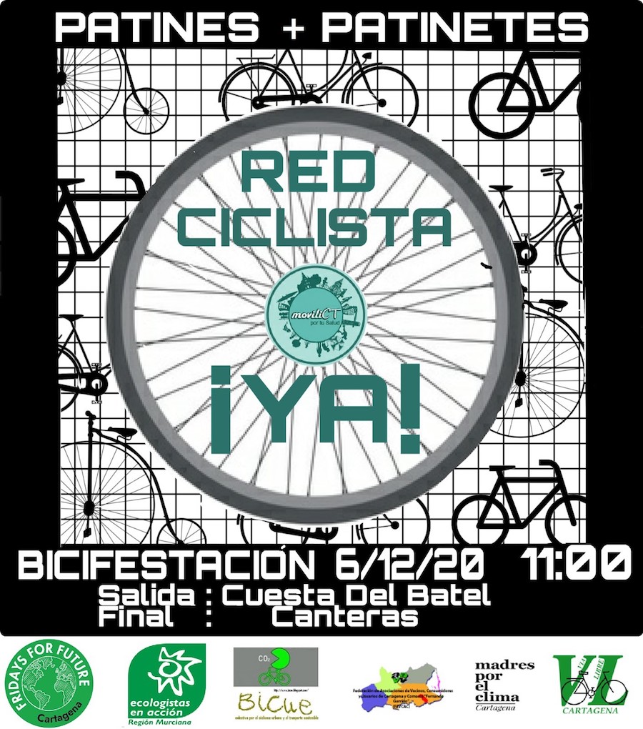 "Pero no solamente nos queremos dirigir al Ayuntamiento con esta manifestación. Hemos escogido, la zona verde junto a la muralla de Carlos III, a la bajada de la cuesta del Batel, para poner también un foco de atención en el vial de Alfonso XII que recorre el puerto de Cartagena. Nos preocupa mucho que en el nuevo proyecto de remodelación (otro más) se olviden de los verdaderos protagonistas de la movilidad, es decir los ciudadanos y ciudadanas que diariamente caminan, pasean o van en bici por esa zona. También nos preocupa mucho, que este proyecto no recoja un vial adecuado (con amplias aceras y carril bici) que llegue al Barrio de Santa Lucía y se prolongue hasta el Hospital del mismo nombre", explica Loto Fernández Ramila del colectivo MoviliCT por tu Salud."Llevamos años reivindicando una conexión adecuada, así como aparcabicis seguros y mejora de la línea de autobús hasta el Hospital de Santa Lucía, pero hasta ahora, no hemos conseguido ningún resultado" indica Eduardo Lucas Muñiz del colectivo Bicue.