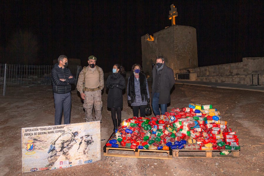 La Fuerza de Guerra Naval Especial, unidad de Operaciones Especiales de la Armada Española e integrada en la Fuerza de Infantería de Marina de la Armada Española, en la madrugada del viernes 18 de diciembre, hizo entrega de una tonelada de alimentos a Cáritas de las localidades de Alguazas, Mula, Bullas, Cehegín y Caravaca de la Cruz. También se ha entregado casi otra tonelada de alimentos a distintas instituciones y asociaciones benéficas del área de Cartagena.