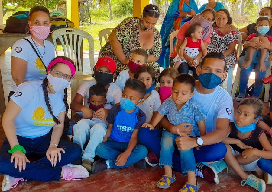 Por otra parte, la Fundación Escribiendo Sonrisas en Venezuela, liderada por los jóvenes escritores Reinaldo de Fernández e Isamar Baptista, llevaron a la Comunidad La Peña del Municipio indígena de La Guajira, la ayuda que Cartagena por la Caridad les hizo llegar, y en la que 80 niños y niñas recibieron regalos navideños, participaron de un almuerzo comunitario y se les entregaron cestas de alimentos a sus madres y representantes.