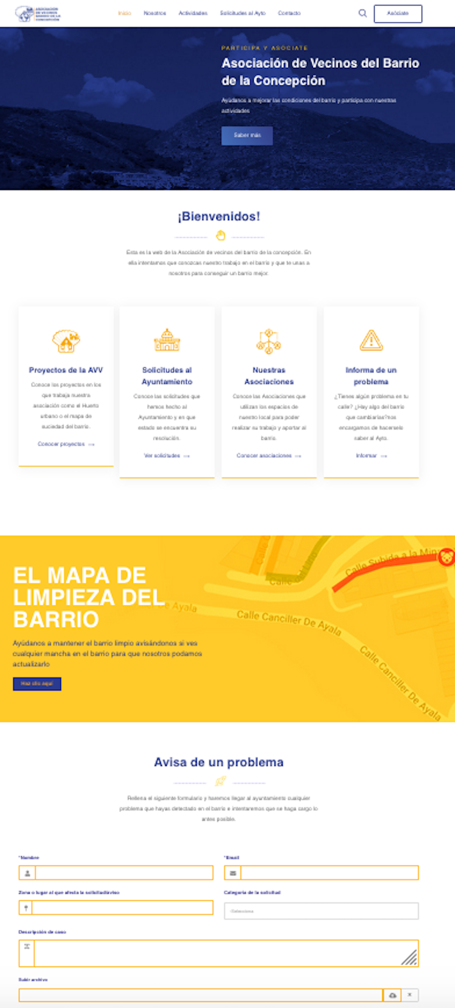 La Asociación de Vecinos del Barrio de la Concepción presente una de las páginas web más completas para el servicio hacia los vecinos. Lo habitual en muchos colectivos vecinales es utilizar un perfil de red social (sus prestaciones son limitadas) o tener una web casi inactiva. En este castizo barrio no es así. Su portal presenta una ventana muy abierta hacia la fácil participación de los residentes del entorno y el desarrollo de las quejas, desde el momento en que se trasladan al Ayuntamiento como si se resuelven o no.
