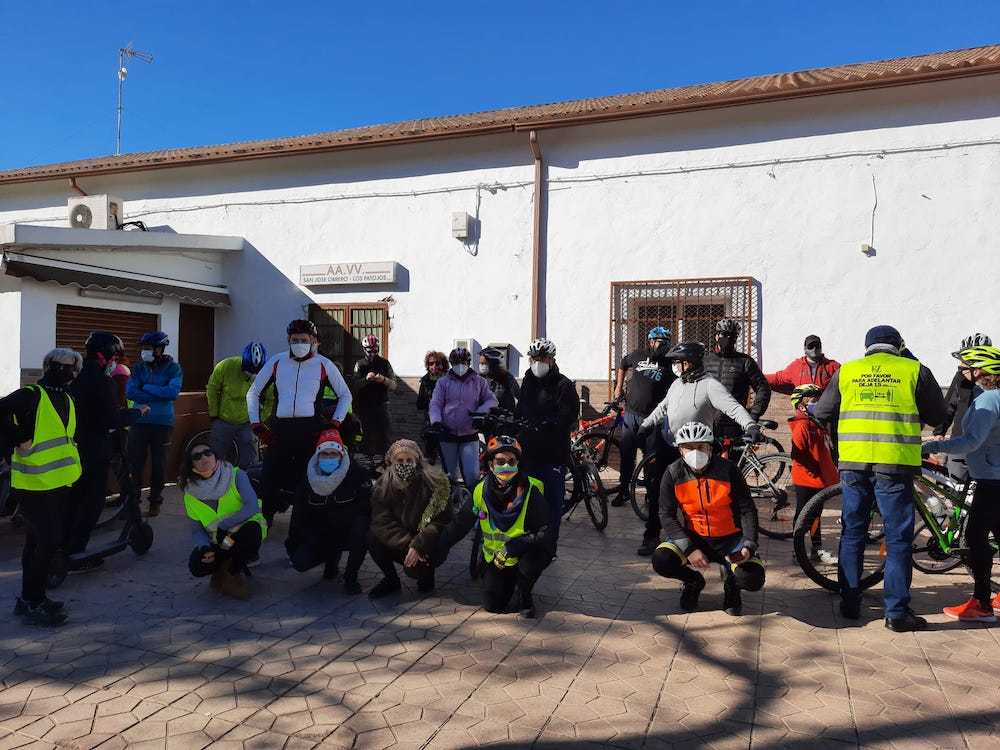 "Dejamos la Avenida del Cantón, con la sensación de estar pasando por un dique que actuará embalsando las aguas en periodos de lluvias fuertes y creando problemas a los vecinos del Bº de la Concepción, para dirigirnos a la Bº de San José Obrero, donde denunciamos, al igual que hicimos con Canteras en la Bicifestación anterior, la falta de una acera y un carril bici seguro de conexión con el centro urbano"dice Loto Fernández Rámila del Colectivo MoviliCT por tu Salud.