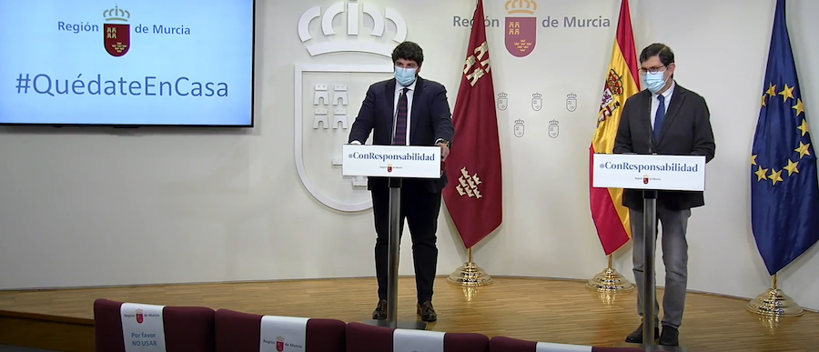 Fernando López Miras, presidente del Gobierno de la Región de Murcia, ha comparecido ante los medios de comunicación. Ha comenzado refiriéndose a que en las últimas fecha se han multiplicado contagios, hospitalizaciones y fallecimientos a consecuencia del coronavirus, para después recordar las medidas restrictivas que ya se están aplicando. “2021 es para la esperanza (la ciencia se impondrá a la enfermedad), pero también para la prudencia”, ha expresado.