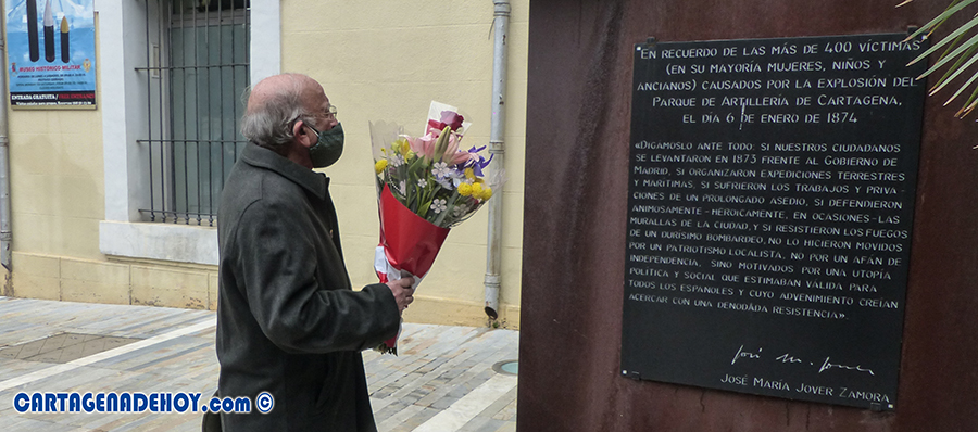 Plataforma por la Biprovincialidad del Sureste Español '2 es +' ha organizado esta mañana el acto en recuerdo de las más de cuatrocientas persnas que fallecieron el 6 de enero de hace 147 años cuando, durante el sitio de Cartagena en la Guerra Cantonal, un proyectil cayó en la instalación, generando una explosión que abarcó a gran parte del munición que se encontraba en el lugar.