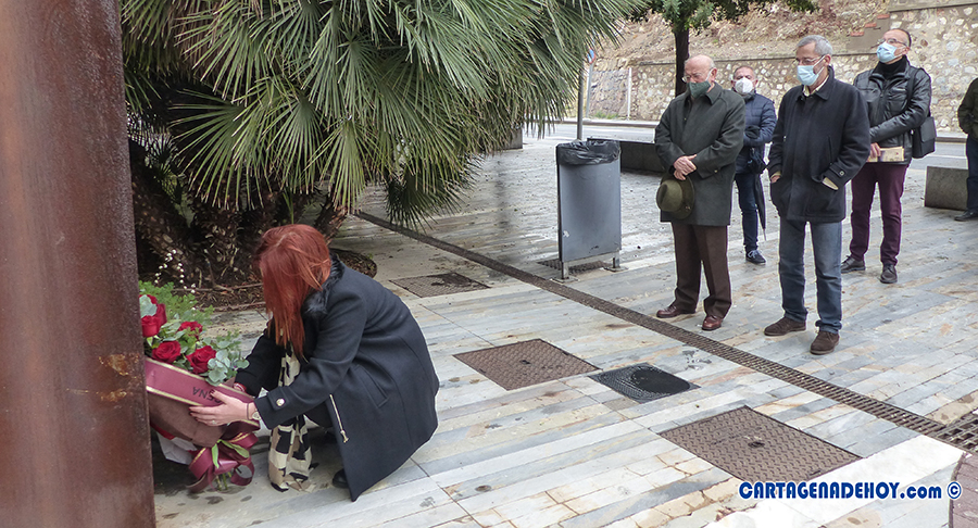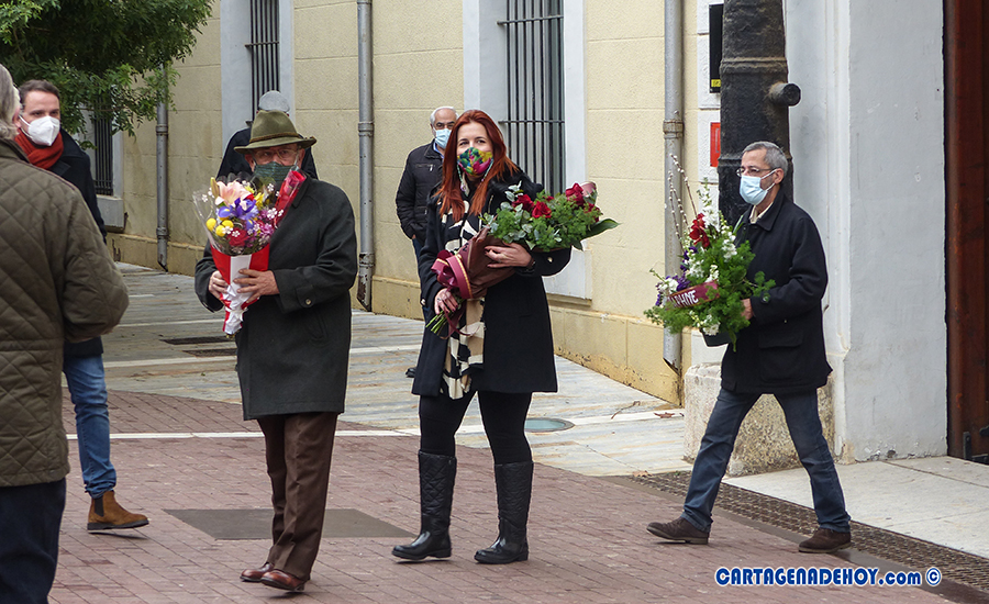 A continuación se ha procedido a depositar ramos de flores junto al monumento conmemorativo por parte de Plataforma '2 es +', asociación Dafne y Movimiento Ciudadano, estando este partido político en este acto representado por seis concejales: José López, Jesús Giménez, María José Soler, Ricardo Segado, María Dolores Ruiz y Arantxa Pérez.