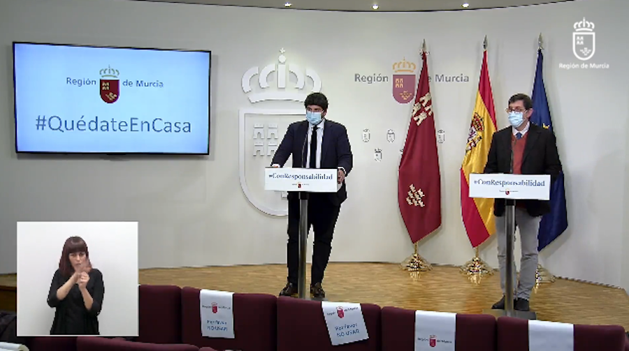 El Gobierno regional prohíbe encuentros entre personas que no residan en el mismo domicilio, salvo casos excepcionales y también obliga al uso permanente de la mascarilla fuera de casa. El presidente autonómico, López Miras, afirma que su ejecutivo hace lo que le permite el ordenamiento jurídico y pide la implicación de toda la sociedad para frenar "la más grave situación que sufre la Región en el último siglo". Ha lamentado que el Gobierno de España no asuma el liderazgo y coordinación para una actuación conjunta en todo el país, "como está haciendo el mundo entero".
