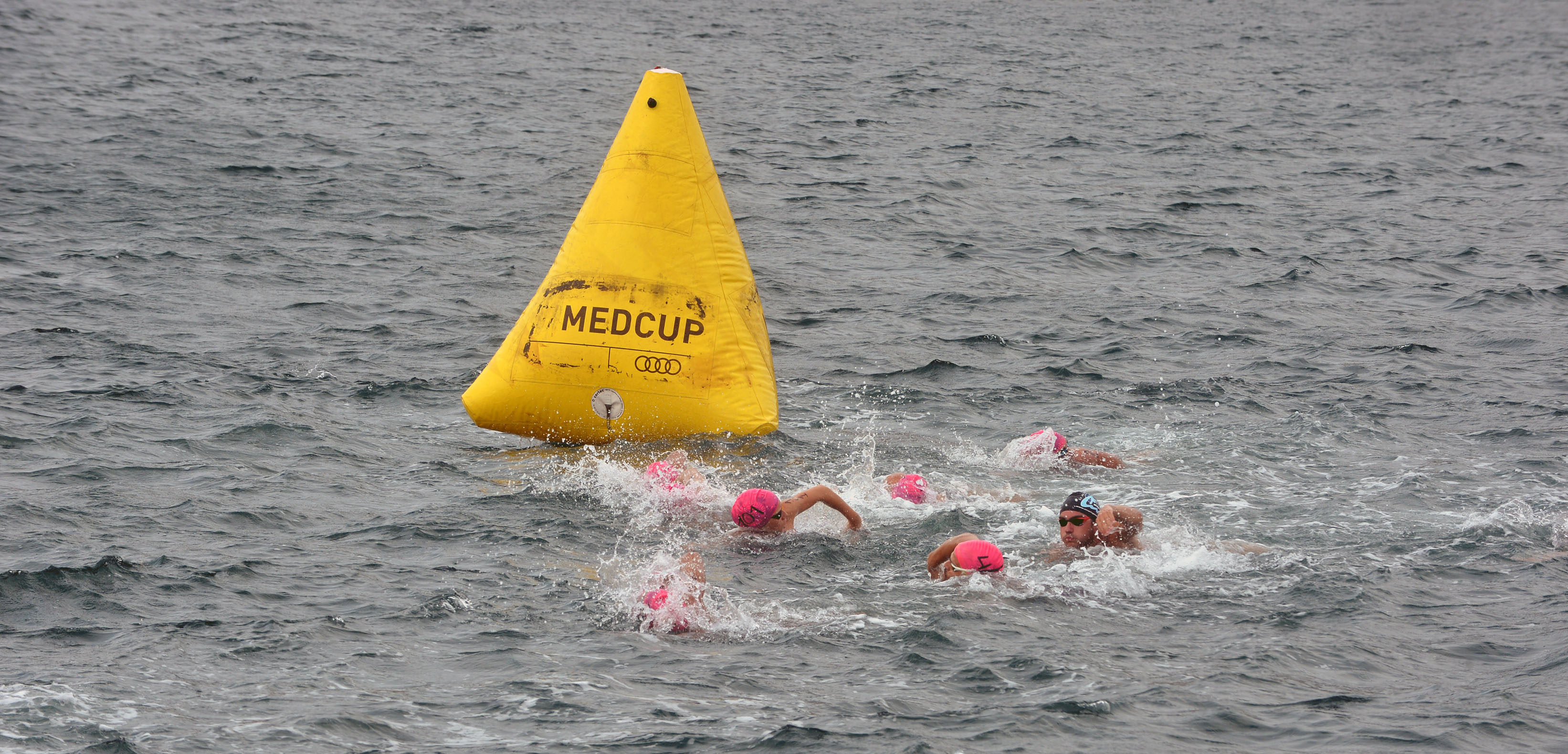 A nado por el puerto de Cartagena. Cerca de 200 nadadores profesionales y aficionados han surcado a nado el puerto de Cartagena ante la atenta mirada de foráneos y autóctonos en la XXVI Travesía a Nado por el Puerto de Cartagena.
