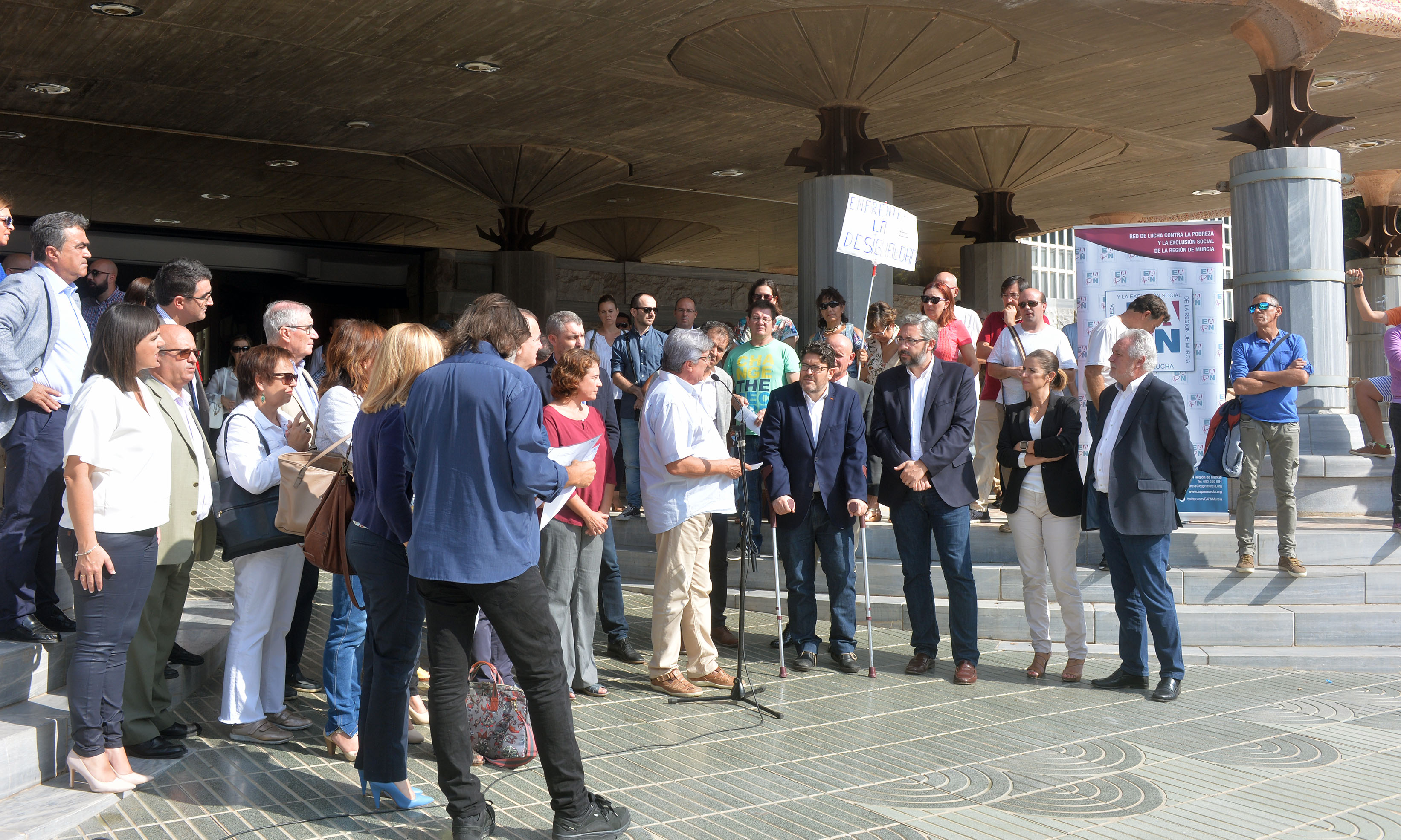 A mediodía se ha leído un manifiesto conmemorativo del Día Internacional de Erradicación de la Pobreza en la puerta de la Asamblea Regional en el que se remarcan datos como que la tasa de pobreza extrema en la Región se sitúa en el 8,1%, lo que supone que esas personas deben sobrevivir con menos de 342 euros al mes, la cifra es la tercera más alta de las comunidades autónomas.