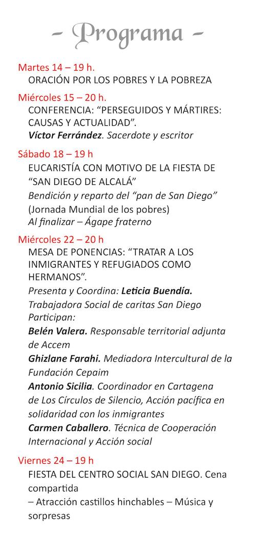 La parroquia del Sagrado Corazón de Jesús (San Diego) acoge este sábado una eucaristía con motivo de esta celebración, con bendición y reparto del ‘pan de San Diego’ y un ágape fraterno a su conclusión.