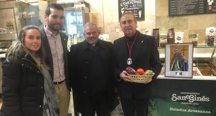La hermandad de San Ginés de la Jara (patrón de Cartagena) ha visitado la Chocolatería de San Ginés de Madrid para hacer entrega de la medalla de ‘Hermano de la Cofradía’ y un capacico de frutos del Campo de Cartagena, en reconocimiento por la excelente labor profesional llevada a cabo diariamente, bajo el nombre de San Ginés desde el año 1894.