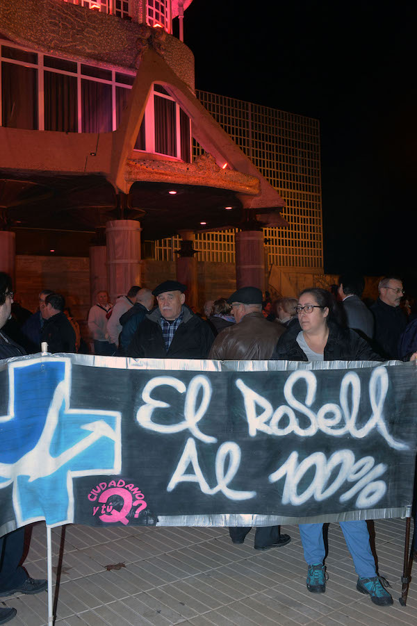 Alrededor de un centenar de personas acudieron ante la fachada principal de la Asamblea Regional para reclamar que se lleve a cabo la conversión pleno en hospital del Rosell, según aprobó este organismo legislativo autonómico el pasado año, fijando un plazo de ejecución que expira el uno de enero de 2018.