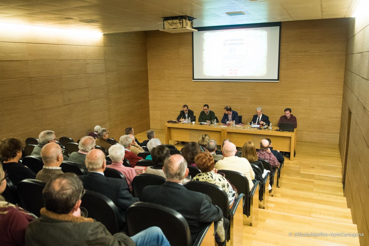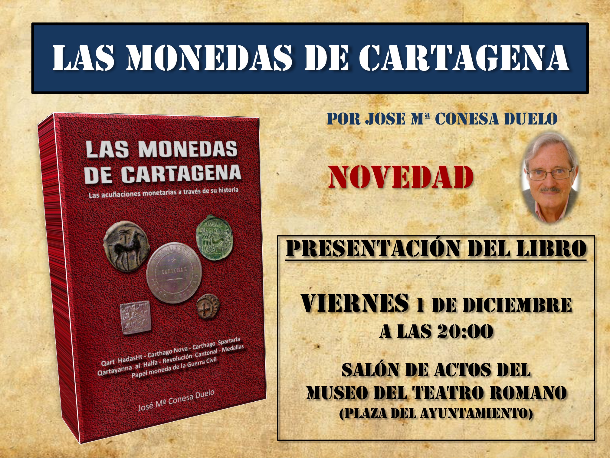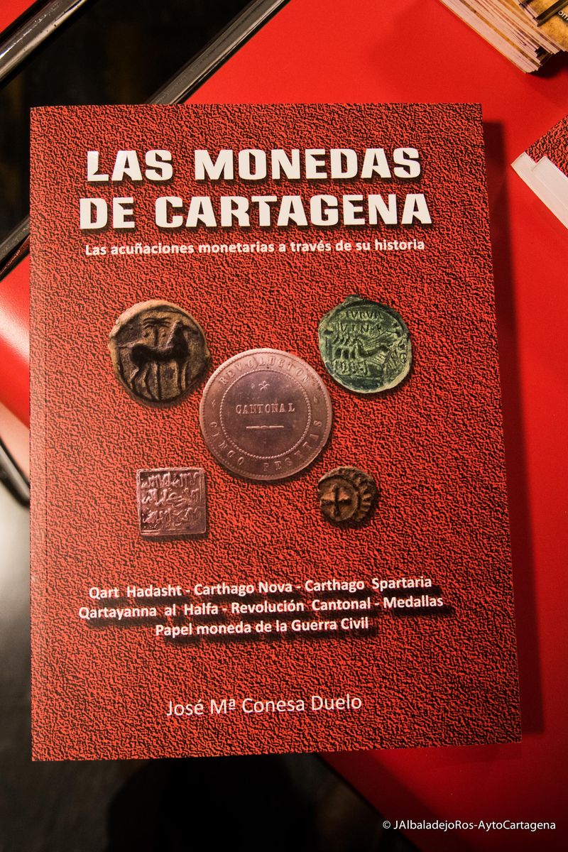 El salón de actos del Museo Teatro Romano de Cartagena acogió la presentación del libro del que es autor José María Conesa. La obra está ilustrada por más de 400 imágenes. A lo largo de sus 180 páginas el lector se introduce en un estudio de la moneda de la través de la historia de Cartagena, con más de 288 piezas catalogadas.