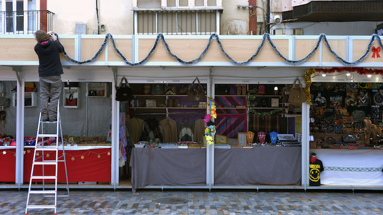 Raquel en una de las casetas de la plaza de San Francisco