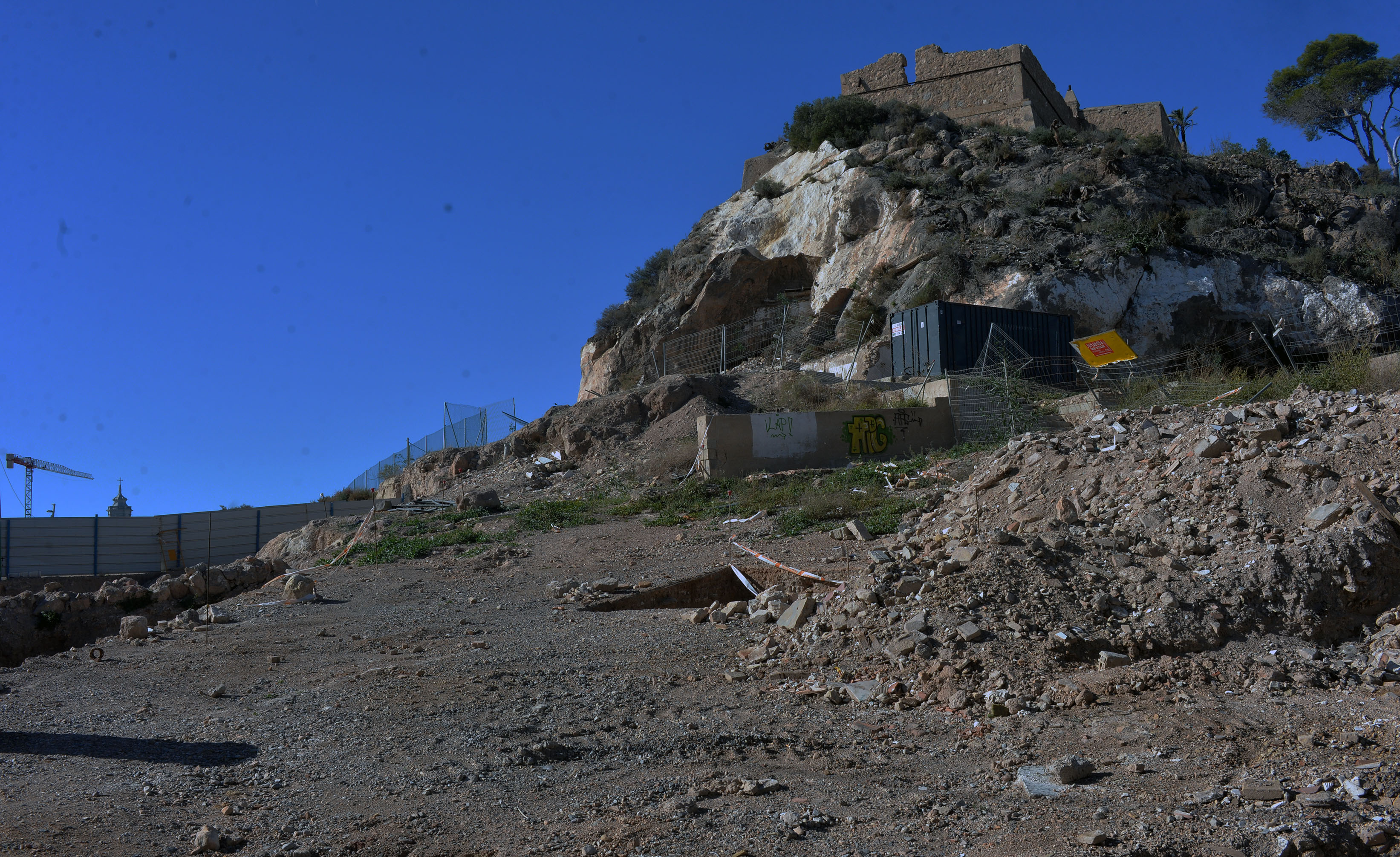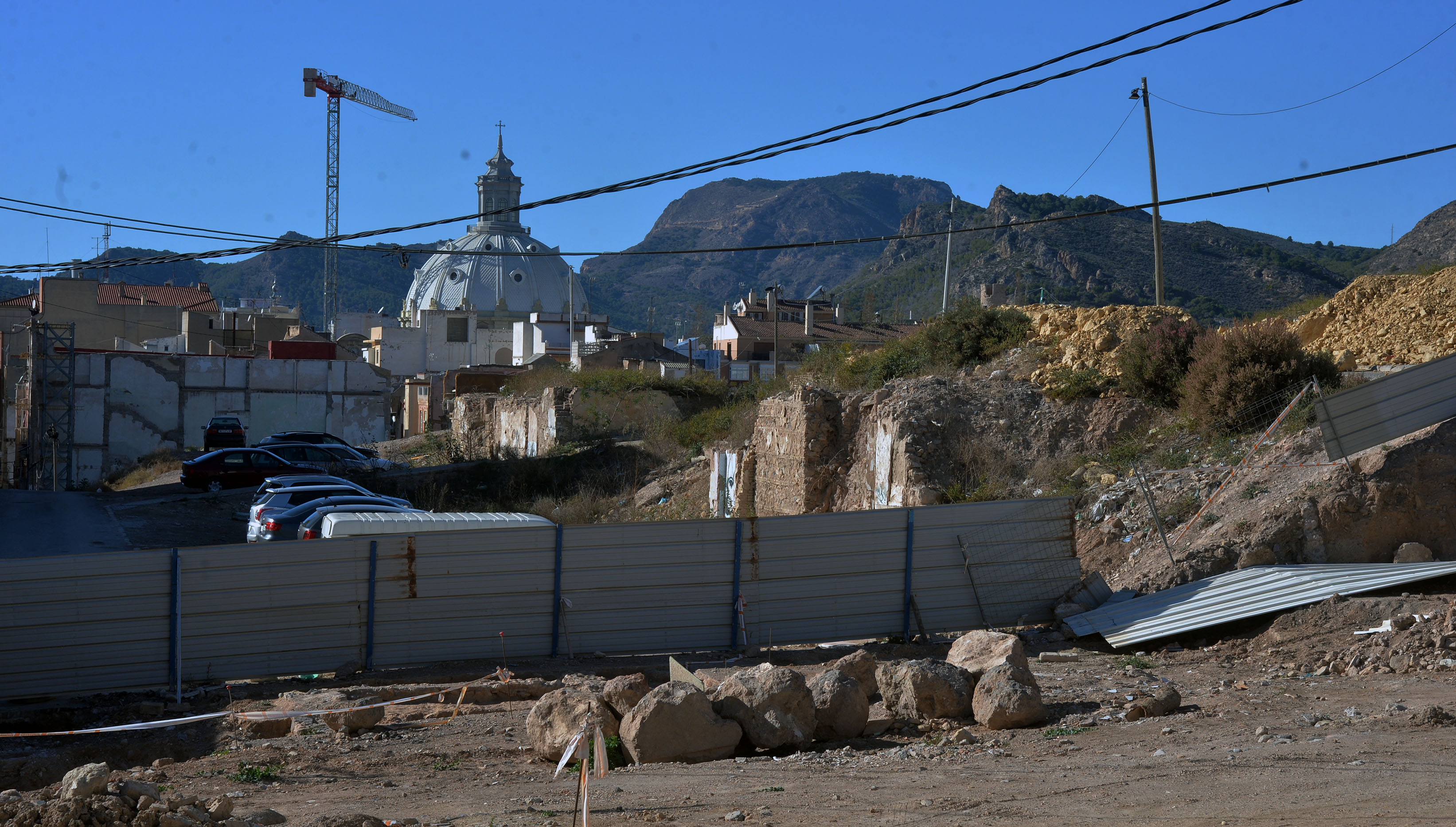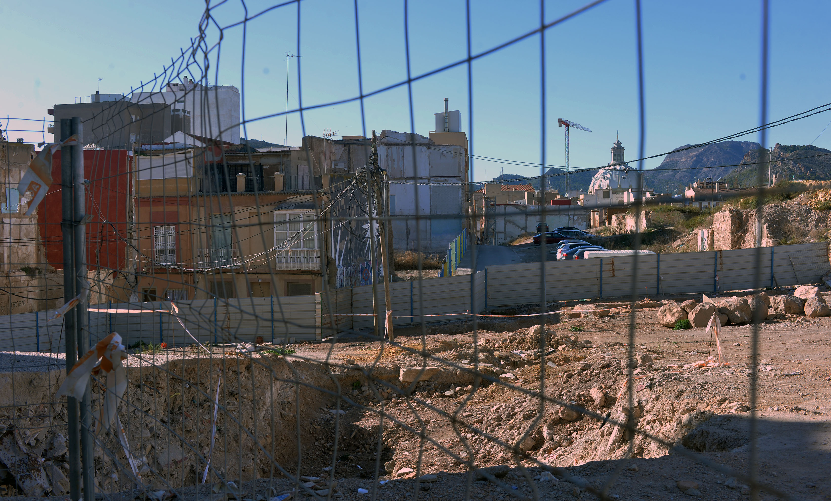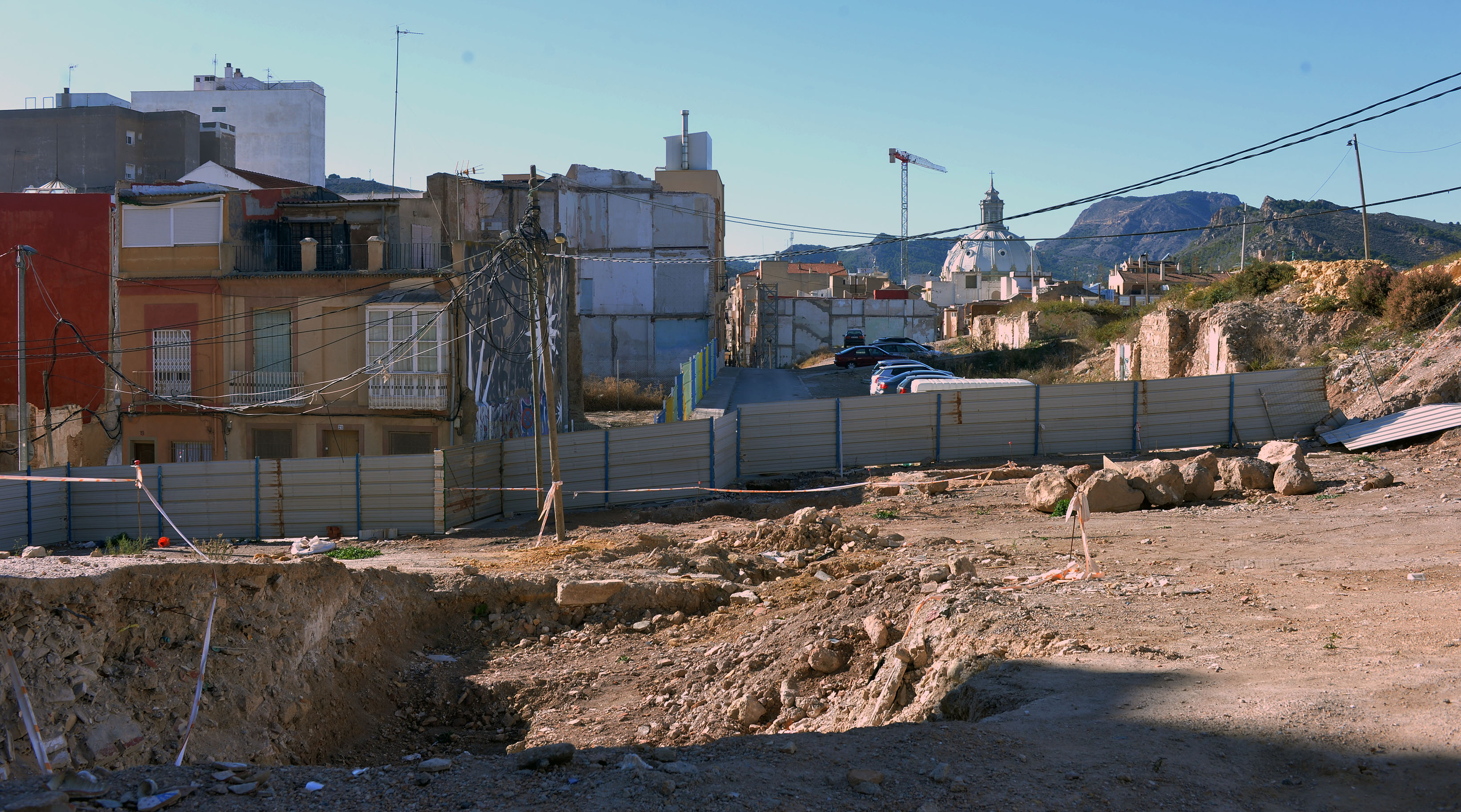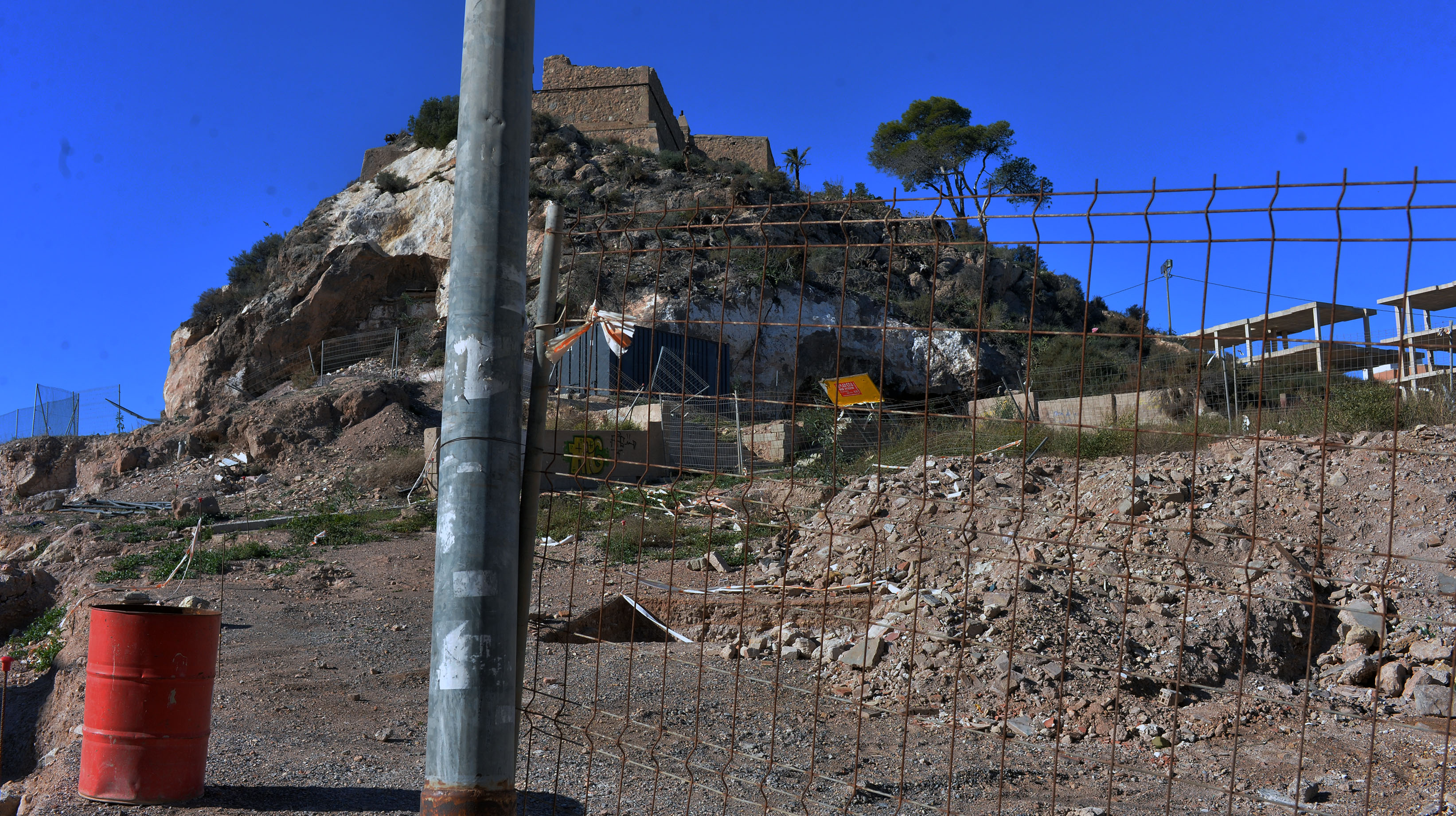 El viento que soplo ayer con fuerza en la ciudad derribo las vallas que ocultaban las vista del publico las obras de la plaza de Sor Francisca Armendariz. La sorpresa es que en los meses que llevan cerradas las calles , apenas ha habido avances.