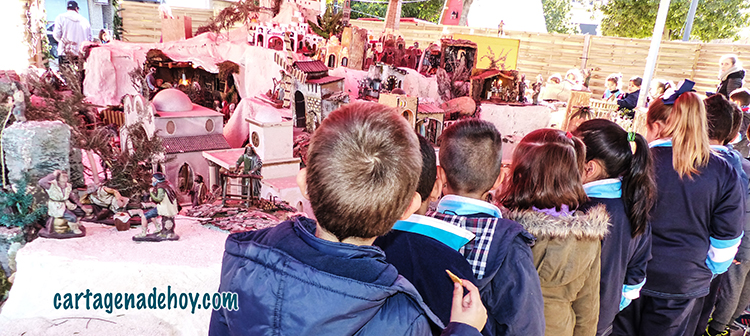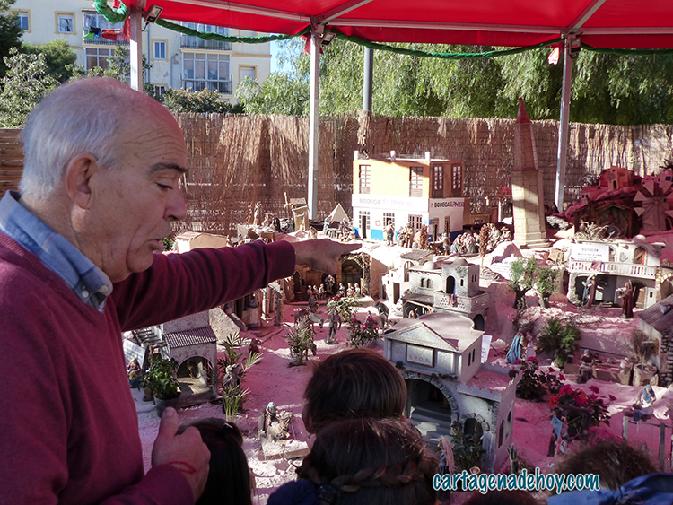 “Este Belén lleva más de dos meses de trabajo y se ha construido a partir de una base formada por sacos de café y escayola”. Así comienza Manuel Torres, por parte de la entidad organizadora, la explicación que lleva a cabo a los escolares, a los que se les habla sobre el significado de lo que están observando “sin entrar en temas religiosos, pues está abierto a que lo conozcan niños de cualquier religión”, explica a este diario. También se les muestran los elementos cartageneros, como los molinos de viento, la taberna de Santa Lucía y, especialmente, el pinacho, que da nombre a la asociación cultural.