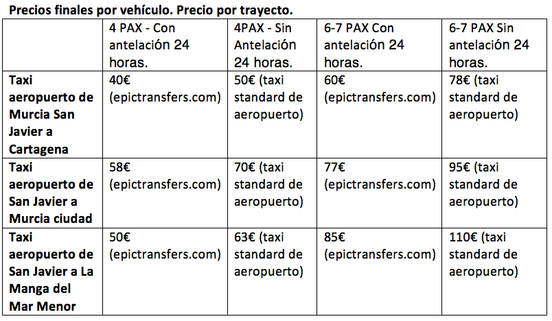 Espero que con este artículo ya tengáis claro cuanto vale un taxi en el aeropuerto de San Javier.