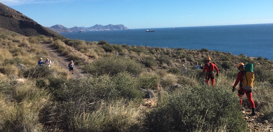Servicios de emergencia acuden a rescatar a una mujer que ha resultado herida sufrir una caída en el camino hacia la Cala del Bolete, en dirección al mar, mientras hacía senderismo en grupo.