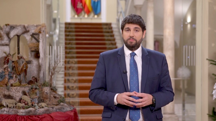 El presidente de la Comunidad destacó en el mensaje de fin de año los datos de empleo y que el objetivo del Gobierno "más que el crecimiento económico, es el bienestar de las personas”. Subrayó la llegada de la Alta Velocidad a la Región, la apertura del Aeropuerto Internacional y la construcción del Arco Noroeste. Asegura, respecto a la situación de sequía, que su exigencia "no va a cambiar: estoy con los agricultores y regantes, y defenderé sus reivindicaciones como propias, donde y cuando sea necesario”. El jefe del Ejecutivo regional también resaltó la eliminación del "claramente injusto" impuesto de Sucesiones y Donaciones, su compromiso con el Mar Menor, y "la gran repercusión" del Año Jubilar de Caravaca.