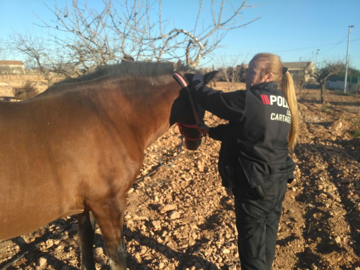 Agentes de la Policía Local de Cartagena intervinieron ayer a un caballo que se encontraba suelto, pudiendo causar peligro para la circulación de vehículos en la carretera E16, de San Isidro a Cuesta Blanca, en Cartagena.