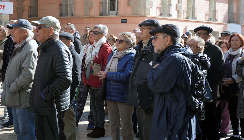 Sobre un centenar de mayores se concentraron en la plaza del Ayuntamiento para expresar su malestar por seguir perdiendo poder adquisitivo tras “la ridícula” subida de las pensiones aprobada por el consejo de Ministros, un 0,25% por cuarto año consecutivo, cuando la inflación está claramente por encima, en concreto, un 2% en el año 2017 y el salario mínimo ha sido incrementado un 4%.
