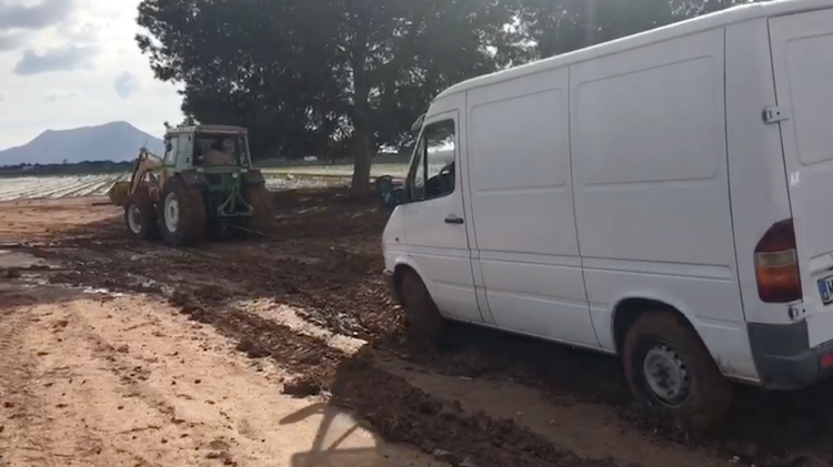 Cuatro vehículos implicados para sacar una furgoneta del barro en El Palmero