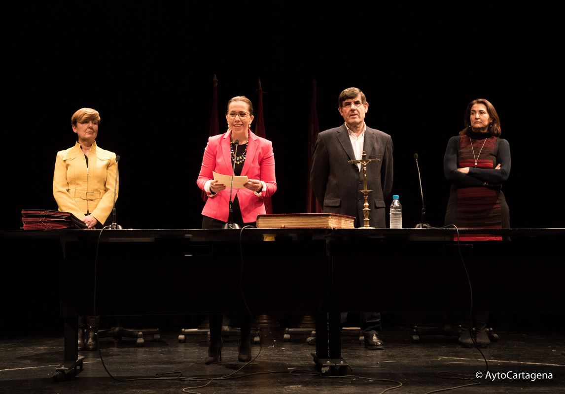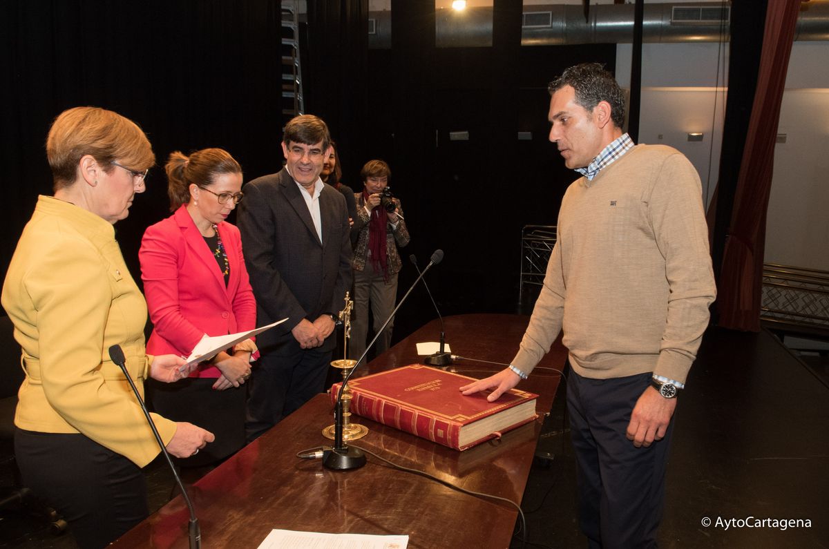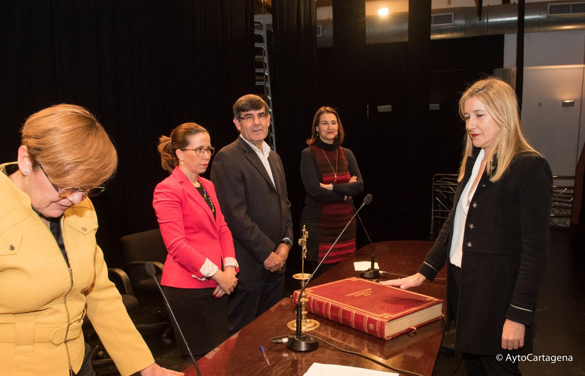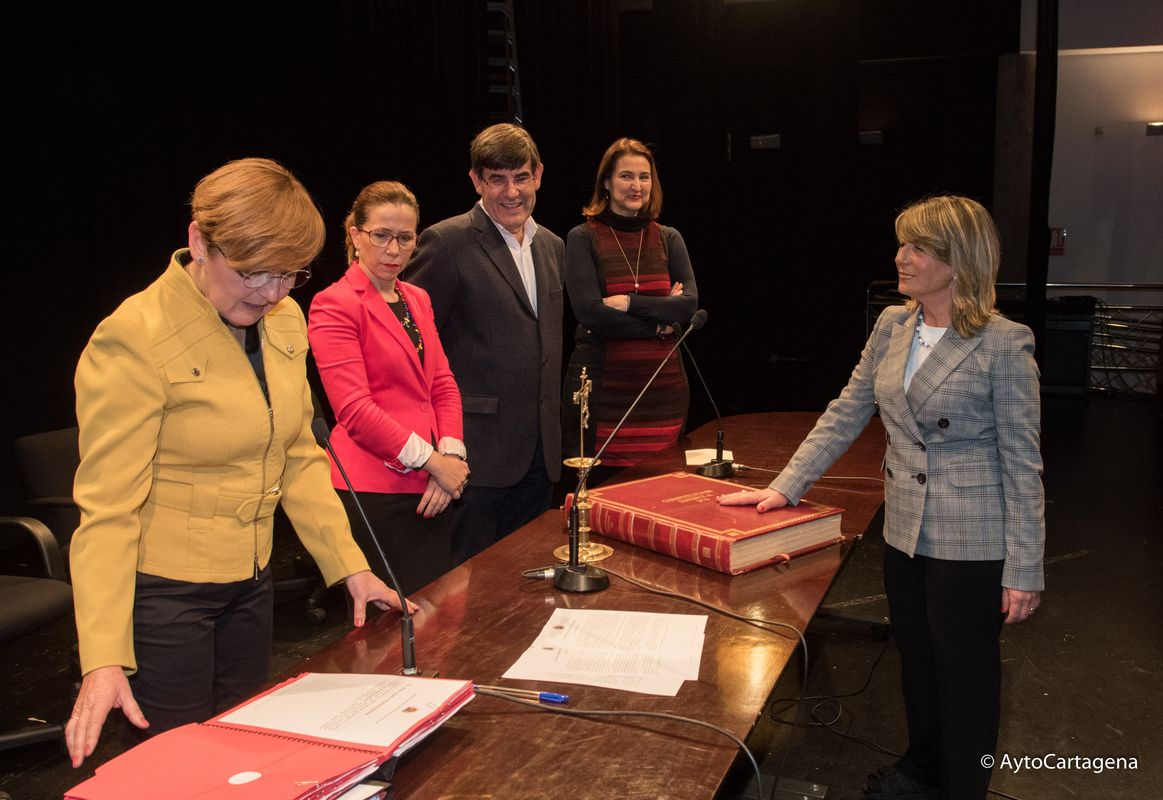 El salón de actos del Centro Cultural Ramón Alonso Luzzy ha acogido esta mañana la toma de posesión de 42 auxiliares administrativos del Ayuntamiento de Cartagena de las ofertas en empleo público de 2014 y 2015, después de haber superado con éxito las pruebas selectivas del concurso-oposición libre que se han desarrollado desde el pasado mes de junio.