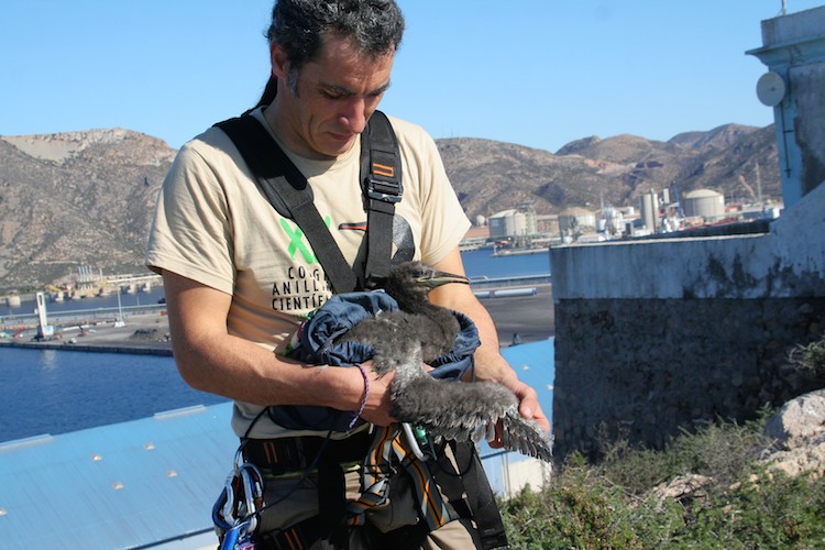 Un equipo del Grupo de investigación ‘Ecosistemas Mediterráneos’ (E065-03 - ECOMED) de la Universidad de Murcia, enmarcado en la colaboración de la Autoridad Portuaria de Cartagena con esta universidad para ‘la realización de los trabajos complementarios al seguimiento de la avifauna marina en el entorno del puerto de Cartagena: Estudios sobre Ecología y conservación de Aves marinas’, se realizó hace unas fechas el marcaje de la segunda colonia de cormorán moñudo mediterráneo (Phalacrocorax aristotelis desmarestii) más importante de la Región de Murcia, en la isla de Escombreras.