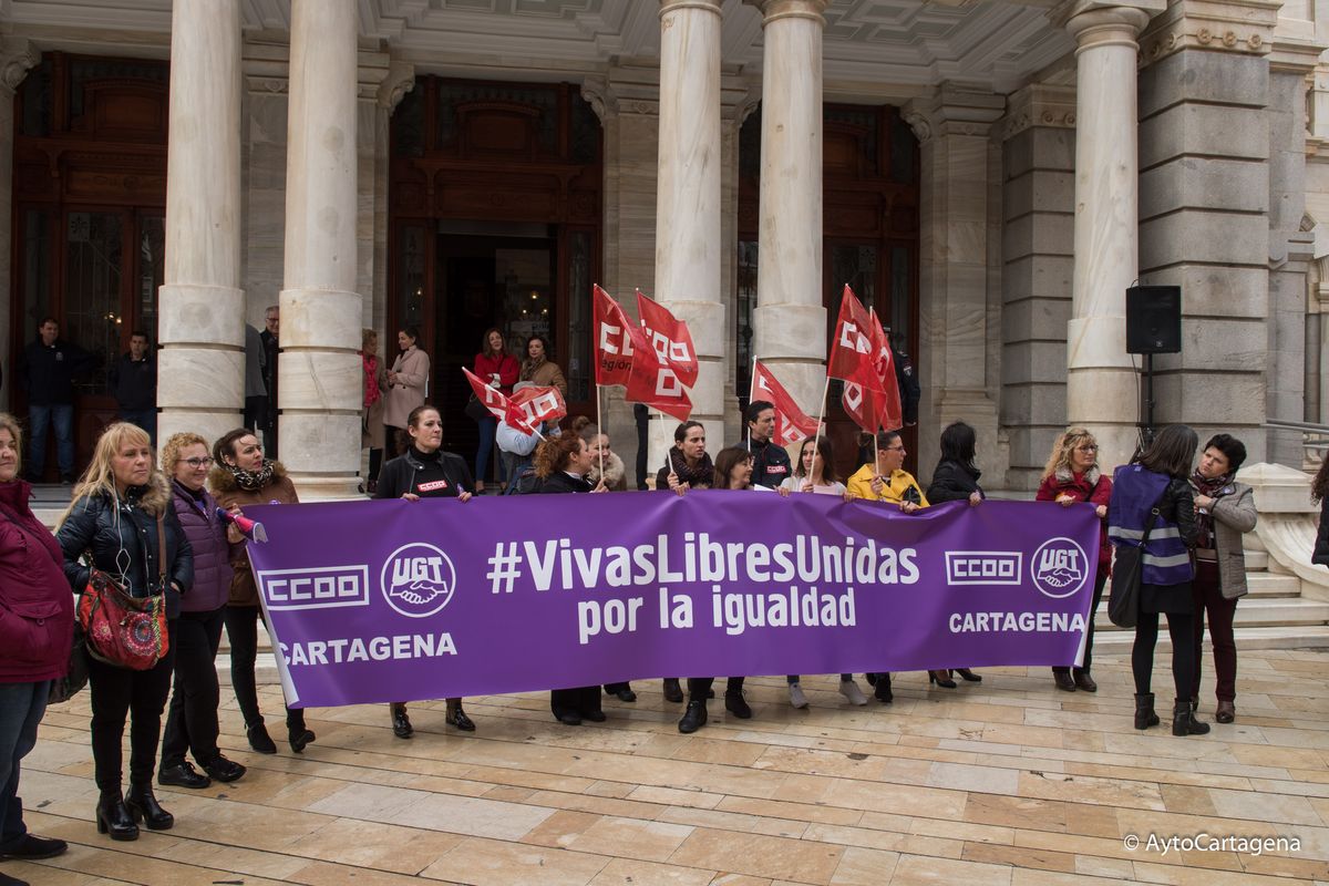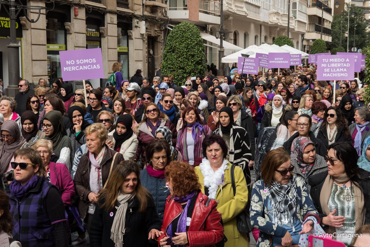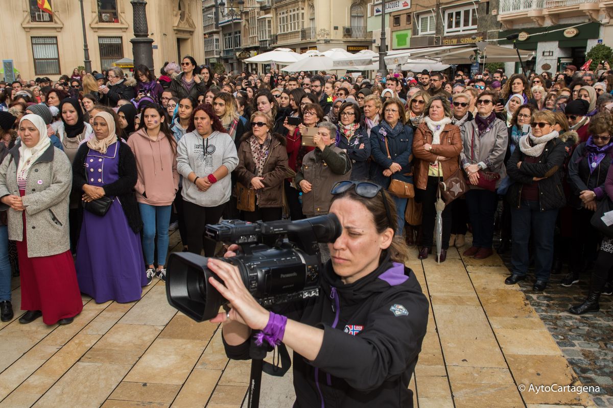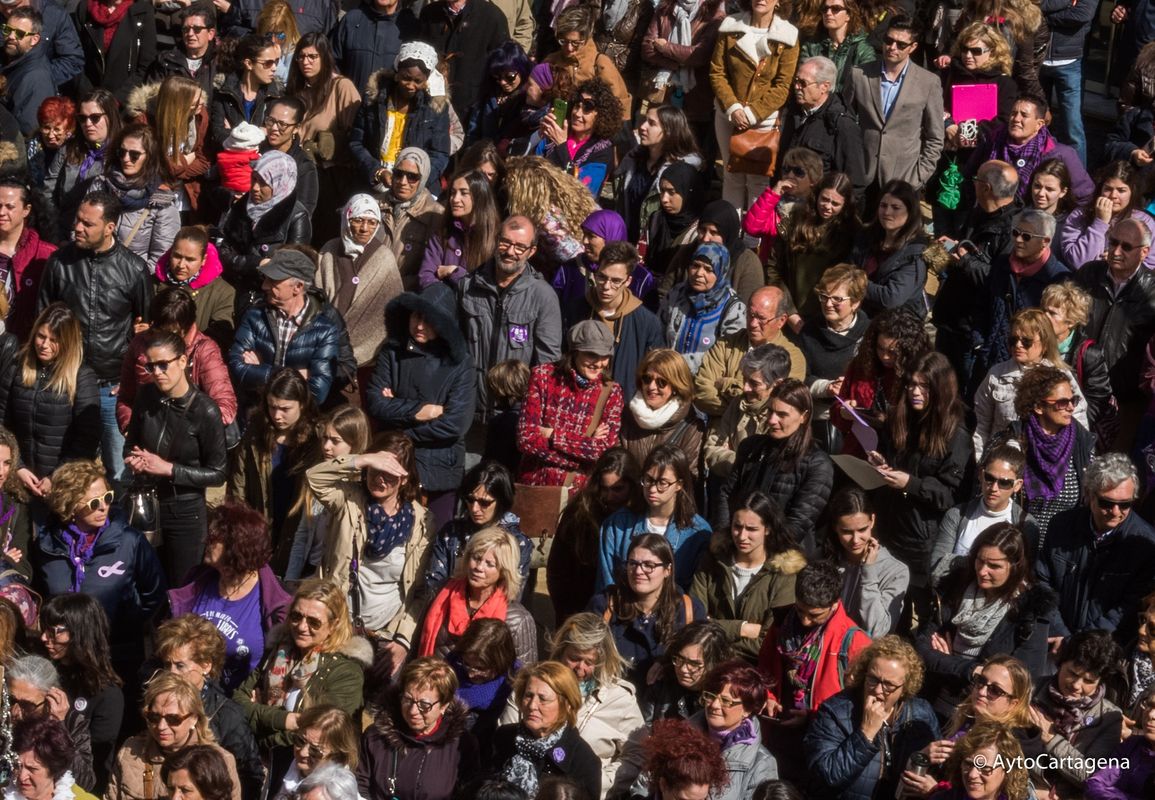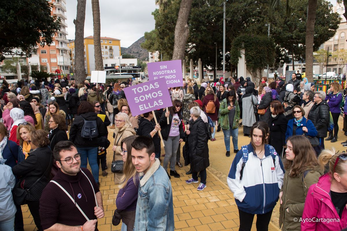 Más de un millar de personas han realizado una marcha, la mañana del 8 de marzo, en apoyo al paro mundial de mujeres. El 8 de marzo se conmemora en todo el mundo el Día Internacional de la Mujer. Por este motivo, a las 11:00 horas salía la marcha desde Plaza de España hasta Palacio Consistorial, donde a las 12:00 horas, la alcaldesa de Cartagena, Ana Belén Castejón, ha leido un manifiesto en la puerta de Palacio Consistorial.