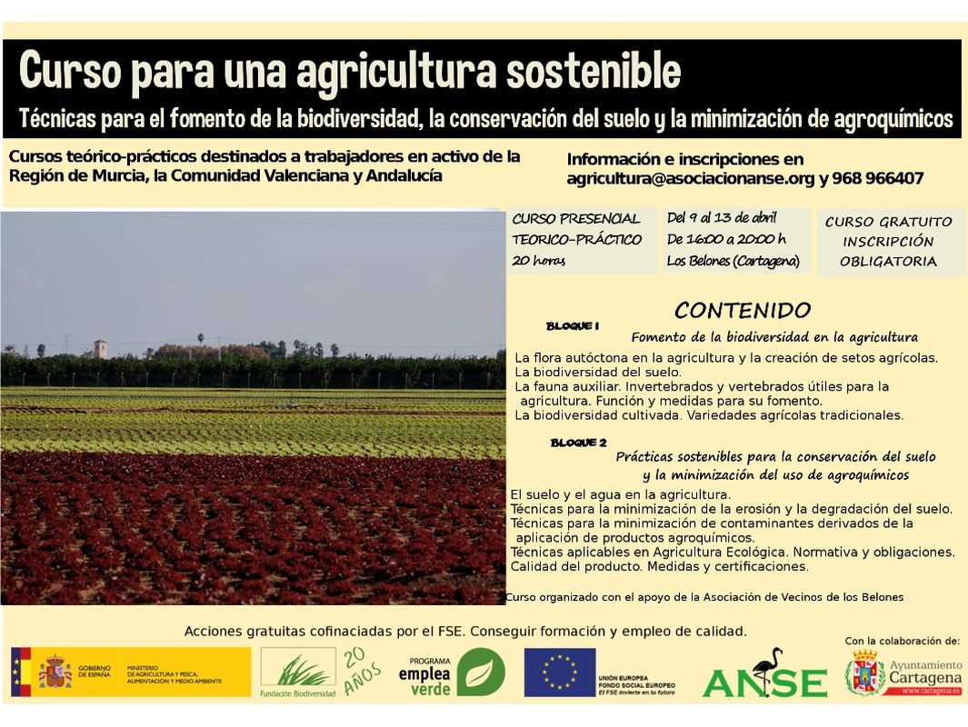 El proyecto Hacia una agricultura más sostenible, técnicas para la reducción de impactos del regadío dentro y fuera de Red Natura 2000 ha organizado el curso para una agricultura sostenible: Técnicas para el fomento de la biodiversidad, la conservación del suelo y la minimización de agroquímicos, dirigido a trabajadores en activo de la Región de Murcia, la Comunidad Valenciana y Andalucía.