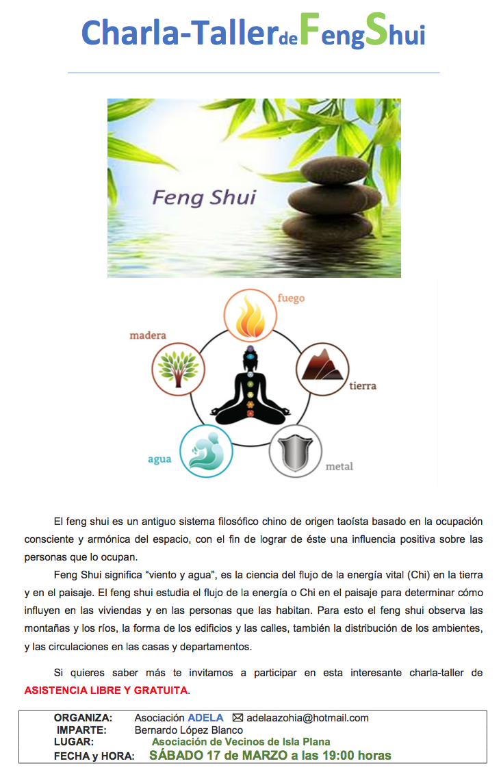 I.  SABADO 17-Marzo. TALLER DE FENG SHUI [19:00 h en AV ISLA PLANA]