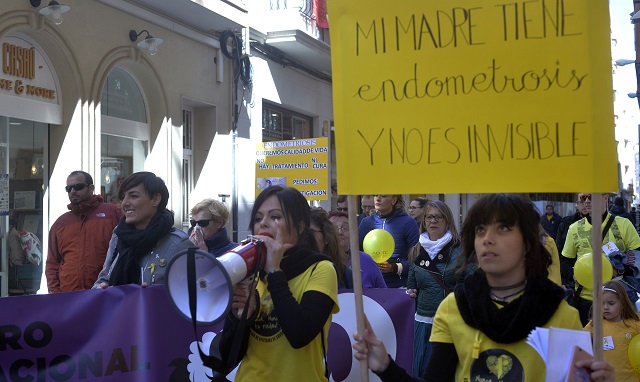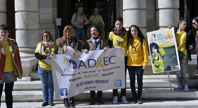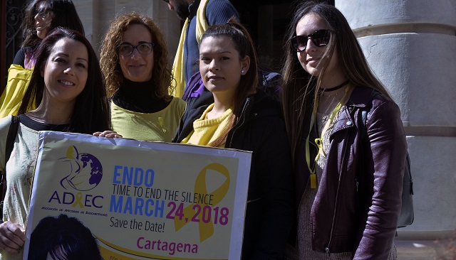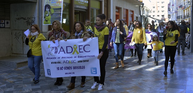 Con una marcha que recorrió las calles del casco histórico de Cartagena, varias decenas de personas participaron en un acto organizado por la Asociación de Afectadas de Endometriosis con el objetivo de hacer visible esta dolencia. Vistiendo camisetas y lazos amarillos, color de este problema de salud, miembros y simpatizantes de la plataforma hicieron un recorrido que terminó en las escaleras del Palacio Consistorial. En el acto participaron las ediles socialistas, Carmen Martín y Obdulia Gómez, y la concejal del grupo 'Cartagena sí se puede' María Teresa Sánchez.