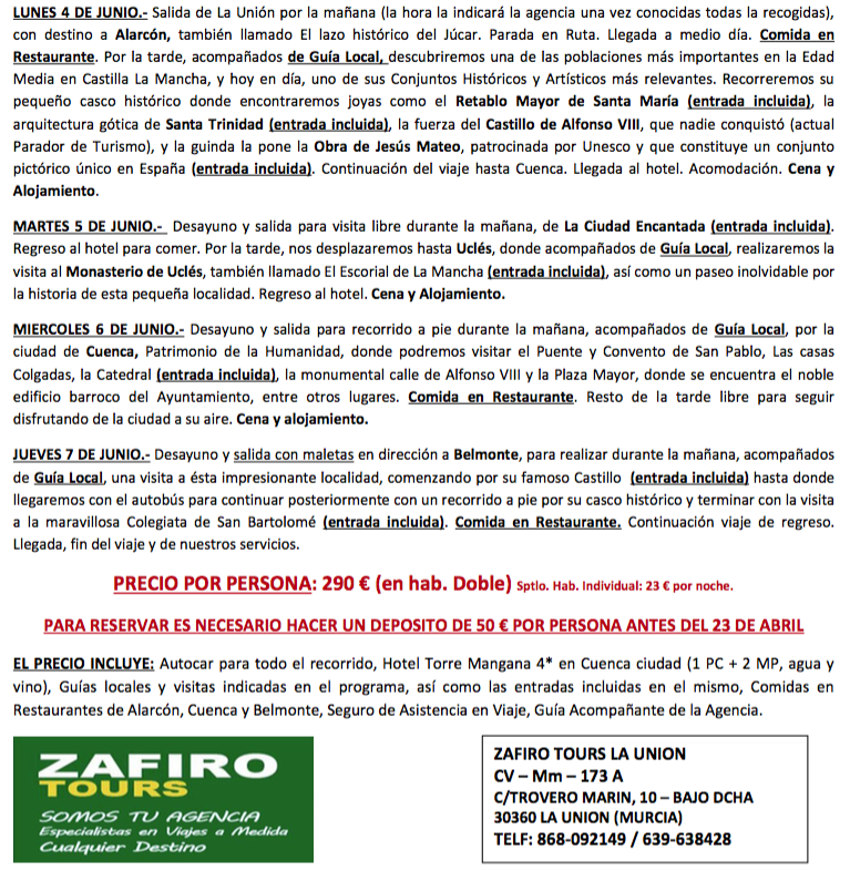 Conocer los encantos de Alarcón, Belmonte y de la ‘encantada’ Cuenca están al alcance a través de tu agencia de viajes. Acuérdate de inscribirte, pues son plazas limitadas.