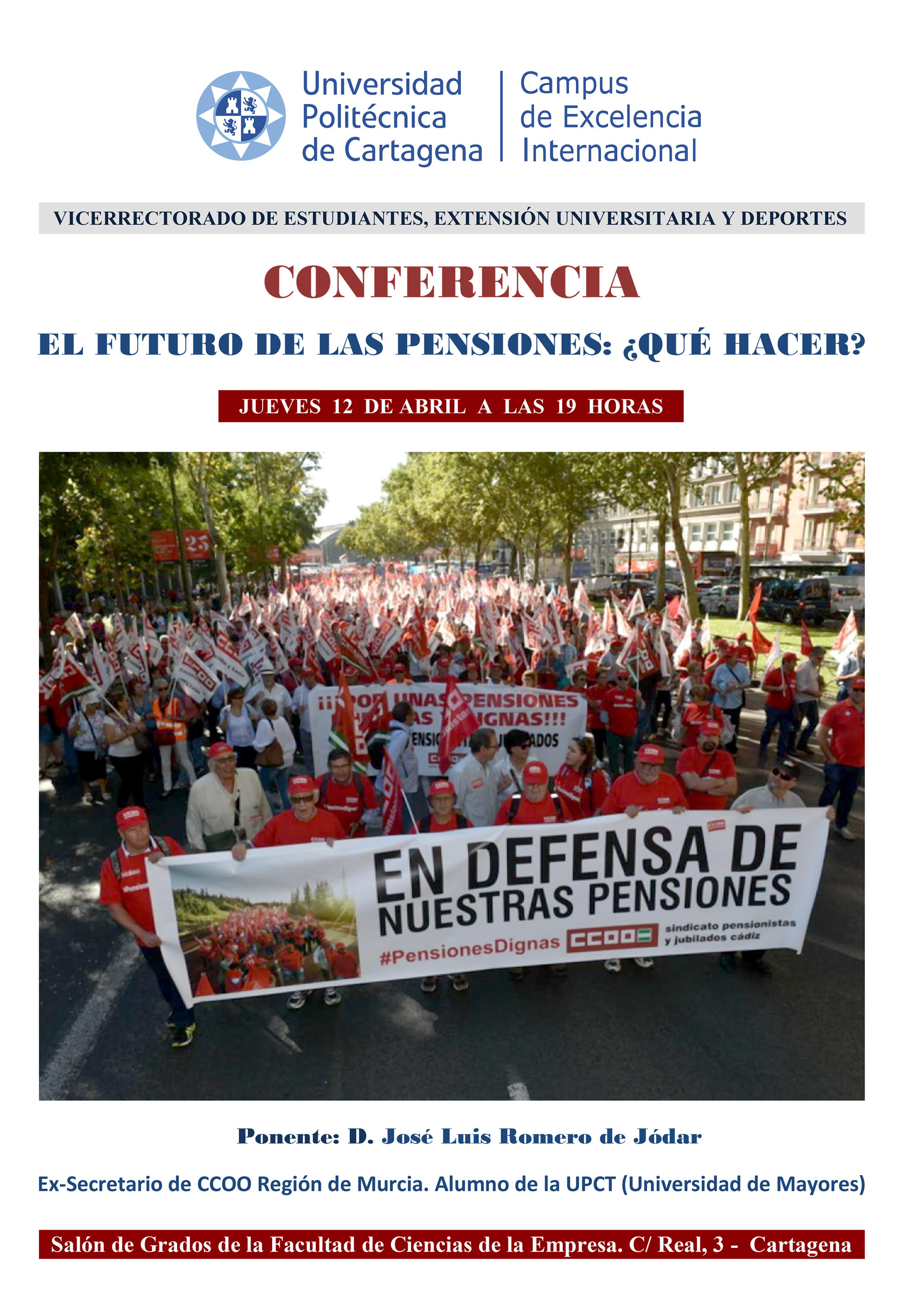 José Luis Romero de Jódar, ex secretario-general de CCOO en la Región de Murcia, ofrecerá una conferencia sobre las Pensiones en la UPCT el jueves a las 19 horas.