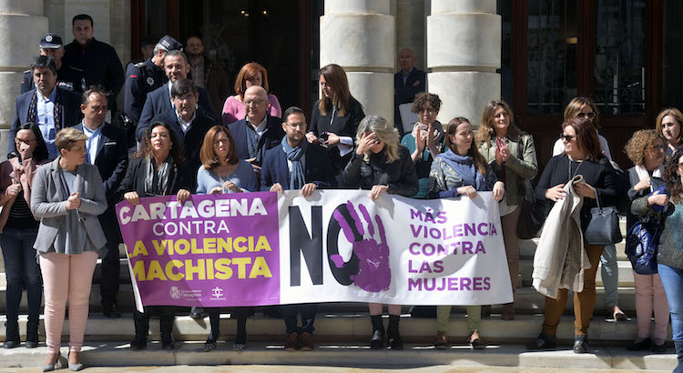 Cartagena ha guardado un minuto de silencio frente a las puertas del Palacio Consistorial, para manifestar su condena y repulsa por el asesinato de una mujer en la ciudad de Murcia, que fue víctima de la violencia machista en el día de ayer.