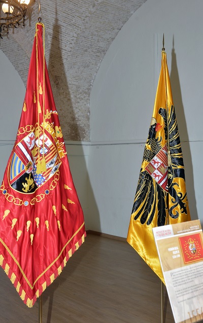 Las banderas son réplicas de las que se exponen de forma permanente en el salón de actos del instituto de Historia y Cultura Militar, del ejército de Tierra en Madrid.