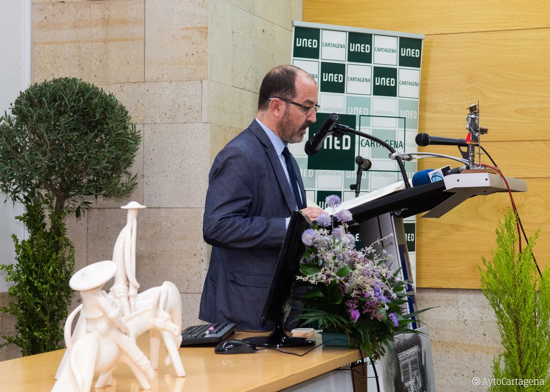 La actividad, promovida con la colaboración del Ayuntamiento de Cartagena, ha acercado la literatura del manco de Lepanto y las aventuras de Alonso Quijano y su escudero Sancho Panza a autoridades políticas y culturales de ámbito local y regional y al personal y alumnado de la UNED.