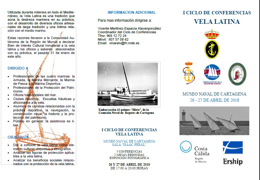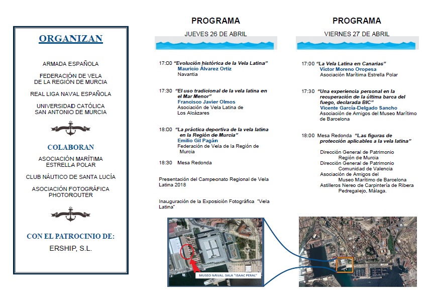 Durante los días 26 y 27 de abril se desarrollará el “I Ciclo de Conferencias sobre la Vela Latina” en el Museo Naval de Cartagena, en horario de 17:00 a 20:00 horas.