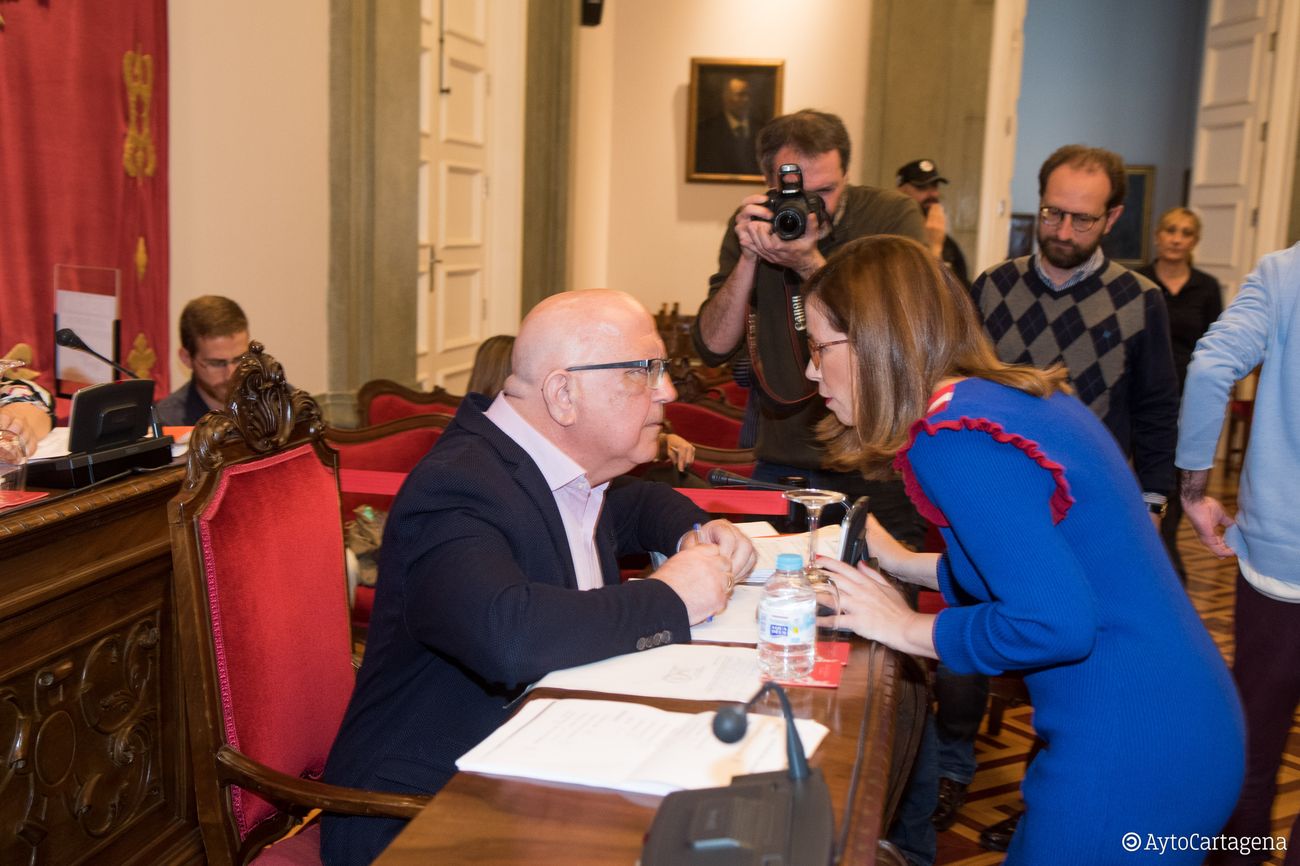 El pleno que comenzaba pasadas las nueve y media de la mañana con la idea de hacer un receso entre las tres y las cuatro y media de la tarde para hacer un receso, dado el abultado número de mociones, ruegos y preguntas, ha rechazado al comienzo, con los votos en contra de PP, MC Cartagena y CTSSP, y los apoyos de PSOE y Ciudadanos, la propuesta del Gobierno municipal para aplicar 2,5 millones de euros del superávit municipal de 2017 a inversiones en barrios y diputaciones.